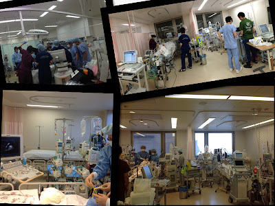 ヘリ出動時も院内では重症患者さんの治療は続きます.PMX-DHP+CHDF(敗血症性ショック,急性腎傷害に対して)を行いつつICU内での手術.紅葉に囲まれたTECCMCですが,そんな景色をゆっくり眺められるのは勤務明けでしょうか.